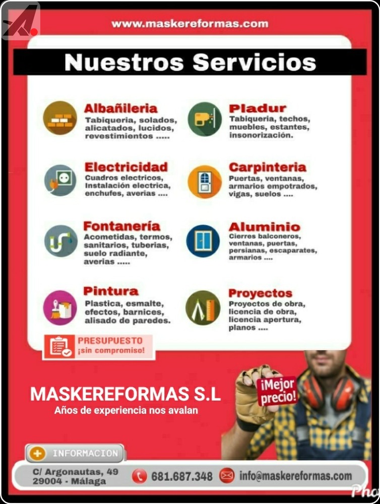 Realizamos trabajos de fontanería, electricidad, escayola, pintura, pladur, albañilería de reformas, obras y construcción.