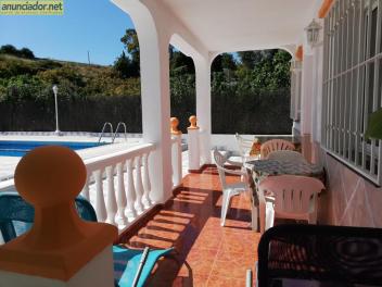 Casa Rural Villa Belydana completa privada con piscina privada y recinto en toda la casa privado, villa de alquiler para vacaciones campo montaña y costa, a 3,4 km de las playas y Cueva de Nerja, a 2,4 km de Frigiliana, Axarquía, Málaga Costa Del Sol, Andalucía, España. Casa Rural Villa Belydana compuesta de 3 dormitorios con camas de matrimonio de 135 cm x 190 cm casa completa máximo 6 personas, un cuarto de baño completo, salón comedor y cocina totalmente equipada con todos los detalles para unas tranquilas vacaciones en el campo o montaña, la villa tiene chimenea, piscina, barbacoa, tv led con canales libres españoles, satélite con canales libres internacionales y españoles, set altavoces 2.1, cocina completa, frigorífico, lavavajillas, lavadora, placa vitroceramica, horno eléctrico combi convección microondas, horno microondas, sandwichera, cafetera eléctrica, cafetera clásica, hervidor de agua para el té, tostador de pan, batidora, exprimidor de cítricos eléctrico, aspiradora, secador de pelo, plancha textil, mesa planchar, estufas eléctricas, ventiladores etc. Con todos los enseres y menaje completo, muy bien cuidada y bien comunicada, buenas vistas al mar y montaña, Superficie: Villa 80 m2, terraza 345 m2, arboleda 550 m2, Terreno total: 975 m2. Estancia mínima precio de 3 noches en todo el año, excepto en los meses de julio y agosto mínimo 7 noches. POR HIGIENE, SALUD Y SEGURIDAD NO SE ADMITEN MASCOTAS, NO FUMAR. NO SE ADMITEN FIESTAS, EN LA SALIDA DEBE DE QUEDAR TODA LA CASA IGUAL COMO SE ENTREGÓ EN LA LLEGADA Y ENTREGA DE LLAVES. TARIFA DE PRECIOS DE 1 A 6 PERSONAS AÑO 2023. (Larga temporada de octubre a mayo) Del 7/01 al 01/04, del 02/11 al 19/12, 3 noches 247€, 4 noches 302€, 7 noches 480€, Semana Santa del *02/04 al 09/04/2023* del 20/12 al 06/01, 3 noches 415€, 4 noches 507€, 7 noches 806€, del 10/04 al 31/05 del 01/10 al 01/11, 3 noches 294€, 4 noches 360€, 7 noches 572€, del 01/06 al 30/06, del 01/09 al 30/09, 3 noches 415€, 4 noches 507€, 7 noches 806€, del 01/07 al 31/07, mínimo 7 noches 952€, (consultar posibles noches, 3 noches 490€, 4 noches 598€), del 01/08 al 31/08, mínimo 7 noches 1150€, (consultar posibles noches, 3 noches 592€, 4 noches 723€).