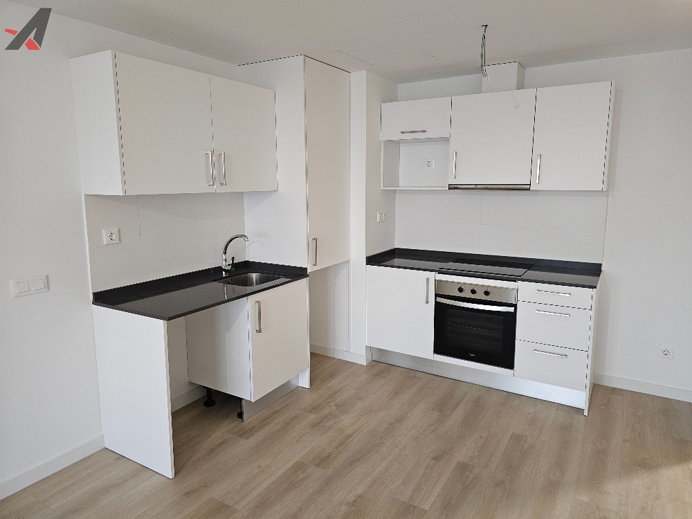 Cocina con mobiliario blanco mate, de la casa Murelli. Encimera Silestone gris marengo. Fregadero de acero inox marca Teka y grifo monomando. Electrodomésticos Teka: horno, placa inducción y campana extractora.
