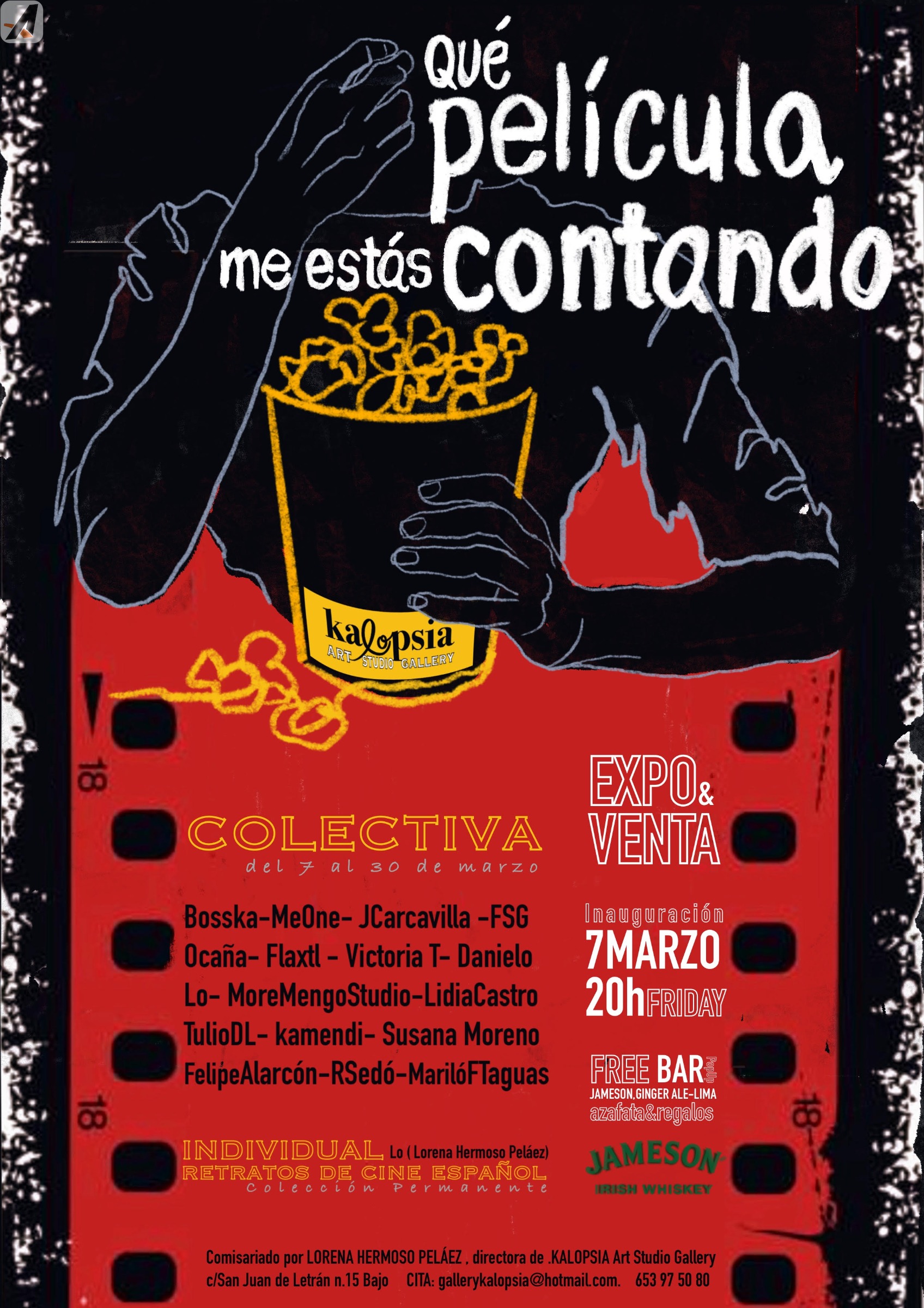 Participan 17 artistas nacionales nos presentan su visión del CINE, tan ambiguo como sugerente. Simultáneamente estará expuesto la colección de retratos de cine español de la artista Lo ( Lorena Hermoso Pelaez).